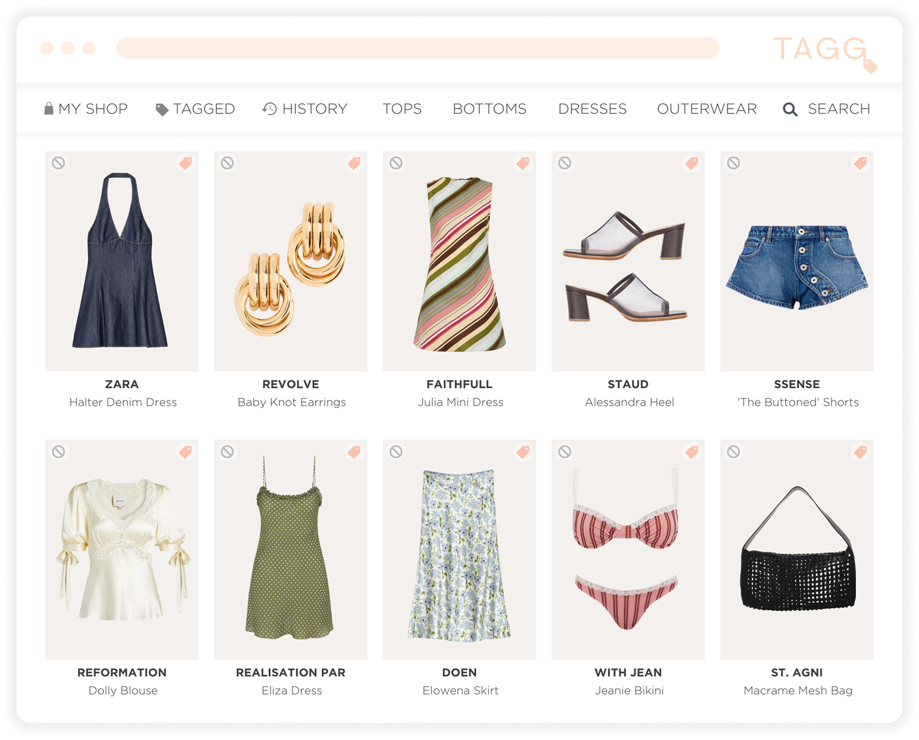 Tagg is so easy and fun to use! It’s like having my own personal shopper without the cost or effort. I love how I just shop normally while Tagg picks up on my vibe and shows me pieces that I actually like.